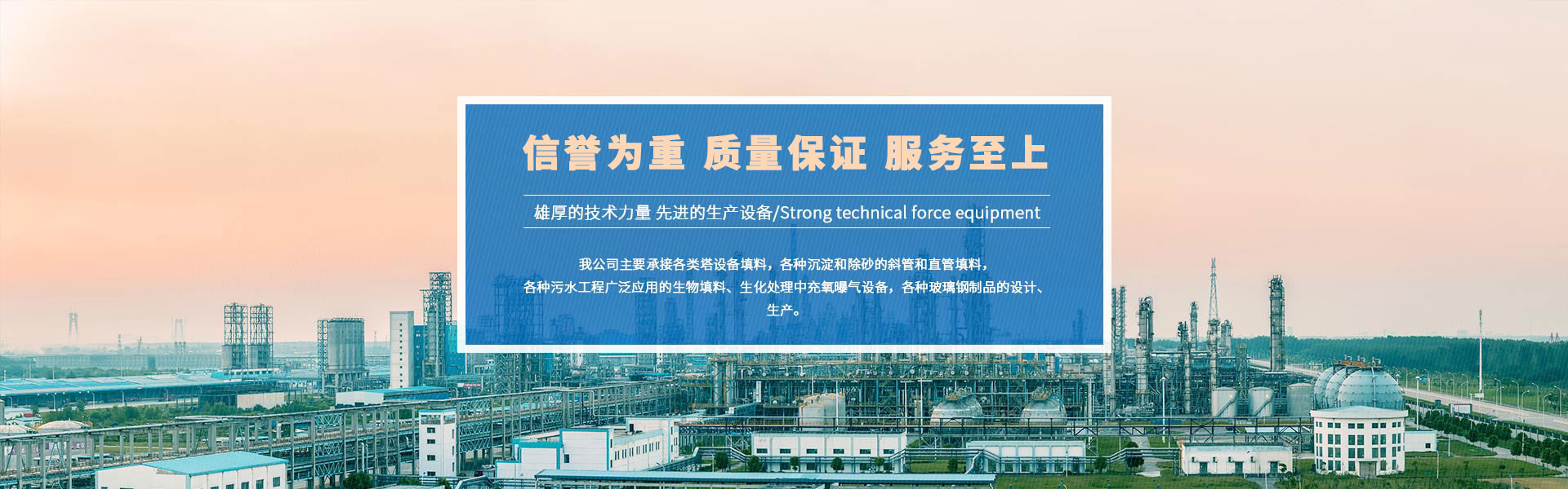 宜兴市苏盟环保填料有限公司是江苏省内填料生产品种齐全的企业之一。公司成立于2016年,拥有原材料生产,成形安装一套完整的生产体系。主要产品:绳型填料,河道填料,组合填料,六角蜂窝斜管填料等。 企业具有完善的管理体制,雄厚的技术力量、先进的生产设备,主要承接各类塔设备填料,各种沉淀和除砂的斜管和直管填料,各种污水工程广泛应用的生物填料、生化处理中充氧曝气设备,各种玻璃钢制品的设计、生产。企业一贯重视技术、坚持依靠科技办厂、兴厂的方针,建立了生产、检测、销售及质量反馈等一整套质量保证体系,确保产品质量。本厂产品在全国石油、化工、冶金、医药、精细化工等行业中广泛应用,并获得用户好评。 MORE